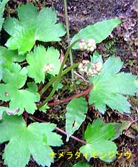 葉の基部は心形であり、耳状になっているのが特徴でこのあたりの薄暗い谷沿いによくある